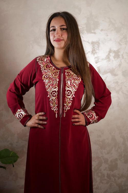 Elegant crepe caftan with master craftsmanship and Rabat-style embroidery